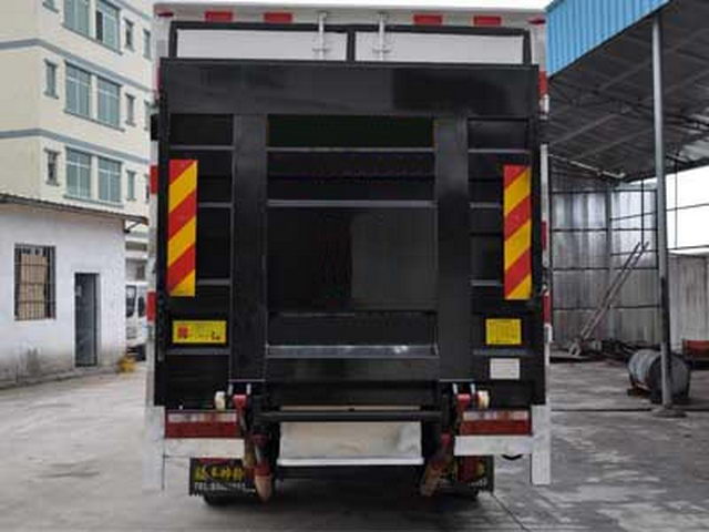 1.車廂頂部封閉不可開啟,選裝導流罩;2.選裝右側雙開門貨廂以及單開門貨廂,貨廂材料可選用鐵平板、鋁平板、彩鋼板;3.外形尺寸長(mm)/軸距(mm)/前懸(mm)/后懸(mm)對應關系為:1)9235/5300/1290/2645,2)9235/5000/1290/2945,3)9995/5700/1290/3005;4.發(fā)動機ISDe160 40,ISDe180 40,YC4E160-42 ,JND412D165-42對應的油耗申報值(L/100km)為26.8,28.6,26.8,26.8;5.側面及后下部防護裝置材料為Q235,連接方式為螺栓連接,后部防護裝置斷面尺寸(長×寬):140mm×45mm,離地高度為533mm;6.安裝具有衛(wèi)星定位功能的行駛記錄儀;7.ABS系統(tǒng)型號/生產(chǎn)廠家:ABS8/克諾爾制動設備(上海)有限公司;8.選裝后部液壓舉升板,選裝舉升板時外形尺寸長(mm)/貨箱長(mm)對應關系:1)9995/7240,2)9555/6800,整備質量6500kg,載質量7695kg,利用系數(shù)1.21 |