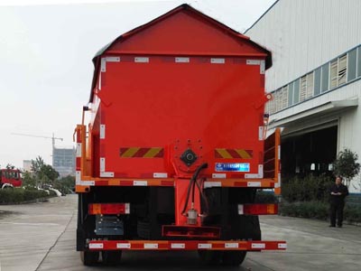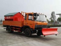 用于冬季撒布融雪劑; 融雪劑撒布裝置由料倉(cāng), 篷布, 篩網(wǎng), 輸送裝置, 撒布器及液壓和電氣系統(tǒng)等組成.整車(chē)車(chē)長(zhǎng)/前伸/前懸/軸距/后懸對(duì)應(yīng)關(guān)系為(mm):11180/1430/1250/5600/2900; 10680/1430/1250/5100/2900; 10280/1430/1250/4700/2900; 10080/1430/1250/4500/2900.側(cè)防護(hù)所用材料為Q235A, 連接方式為焊接連接; 后部防護(hù)裝置材料為Q235A, 連接方式為焊接連接, 斷面尺寸為100X50mm, 離地高度為500mm, ABS型號(hào)為3631010-C2000, 生產(chǎn)廠(chǎng)家為東科克諾爾商用車(chē)制動(dòng)系統(tǒng)(十堰)有限公司.