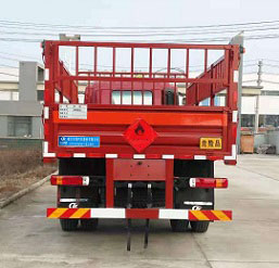 其它 | 該車適用于運輸危險物品為?;愤\輸車。主要用于運輸具有獨立容器(瓶)包裝的液化石油氣,丁烷,乙炔,乙烷,丙烷,丁烯,打火機或打火機加油器,二氧化碳,壓縮氧(氮,空氣,氦,氬,氖),類項號:2.1,2.2。該車運輸的介質為2.1項易燃氣體時,車輛采用”易燃氣體”標識牌,運輸的介質為2.2項非易燃無毒氣體時,車輛采用”不燃氣體”標識牌。整車長度/軸距/后懸對應關系為(mm):8500/5250/1960,8500/4800/2410,8500/4500/2710,8500/5100/2110。該車安裝帶有衛(wèi)星定位功能的行駛記錄儀,僅采用前盤制動器和安裝ABS以及前置消聲器的底盤,采用子午線輪胎,前置排氣管,安裝限速裝置,限速80km/h。專用裝置為固定用卡槽。側防護和后防護裝置材料材質為Q235A碳鋼,側防護與箱體底部焊接連接,后防護裝置與車架采用焊接連接。后防護截面尺寸(mm):120×50,離地高度為500mm。發(fā)動機WP4.6NQ220E61對應的油耗值(L/100km)為:25.89。ABS型號為CM4XL-4S/4M,生產廠家為廣州瑞立科密汽車電子股份有限公司。 |