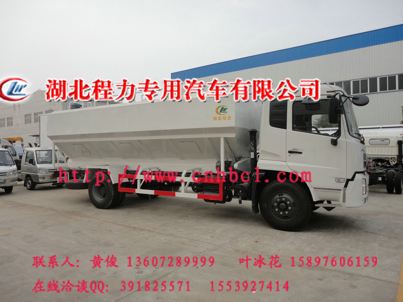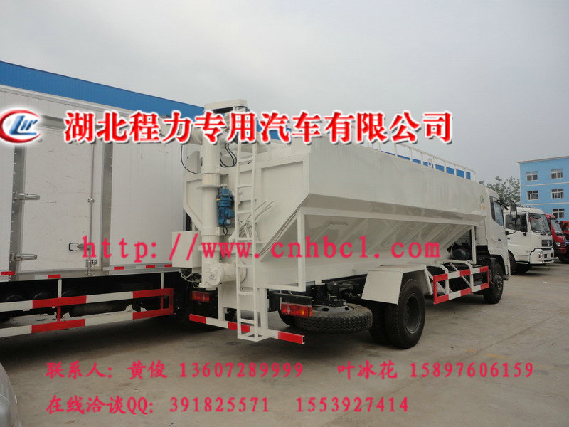 飼料運輸車 飼料罐電絞龍采用外混式自裝結(jié)構(gòu),電絞龍內(nèi)應存有適量的飼料。電絞龍啟動后,葉輪旋轉(zhuǎn),葉輪進口處形成負壓,裝入管路中的灰塵與電絞龍內(nèi)飼料混合,通過壓出室進入氣液分離室。由于氣液的比重差,灰塵從飼料中分離出來,從出口管中排出,飼料在氣液分離室中下沉,經(jīng)多次循環(huán),直到裝入管內(nèi)的灰塵排凈而充滿飼料,完成自裝過程,電絞龍開始正常輸液。
