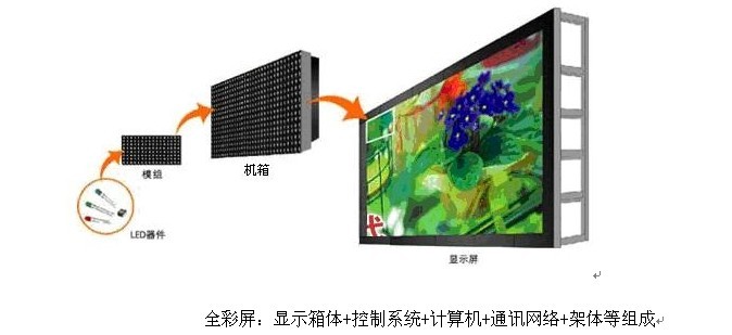 將單元板/模組/箱體按一定方式拼接在一起,加上控制卡/控制系統(tǒng)、電源和框架等就構(gòu)成為LED顯示屏。