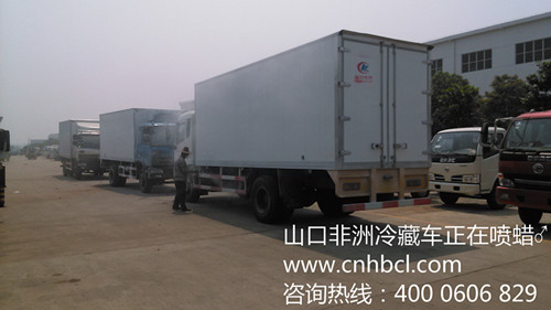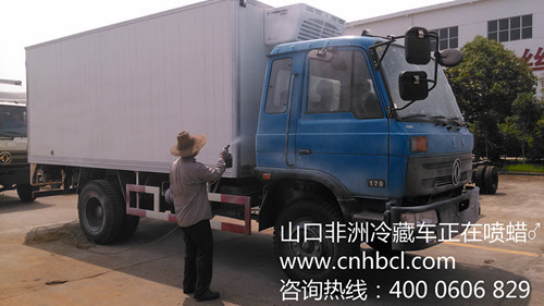 圖為正在噴蠟東風(fēng)天錦冷藏車