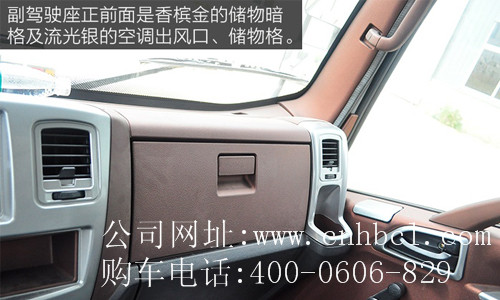 副駕駛座正前面是香檳金的儲物暗格及流光銀的空調出風口、儲物格。與主駕駛座前面位于儀表盤旁邊的空調出風口、儲物格交相輝映。