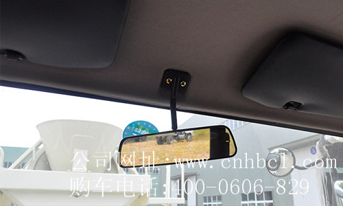 加長版中央后視鏡,拓寬司機視野,攪拌車駕駛室內中央后視鏡不常用,卻是有備無患。