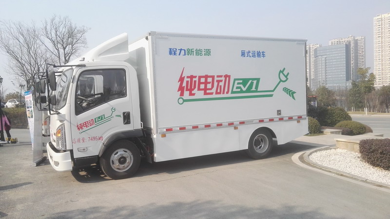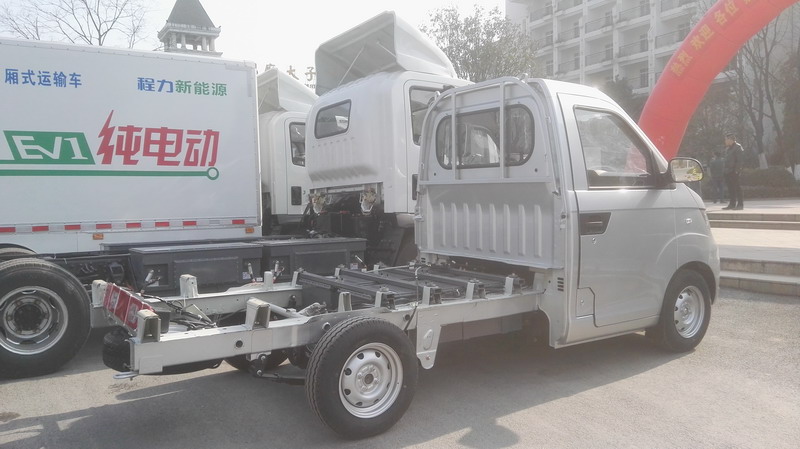 年會(huì)場(chǎng)外現(xiàn)場(chǎng)展出我們自己生產(chǎn)的程力威純電動(dòng)新能源廂式車及專用車底盤,其中3300mm軸距底盤為程力公司全國(guó)唯一所有,也取得生產(chǎn)資質(zhì),不日即可上市銷售.