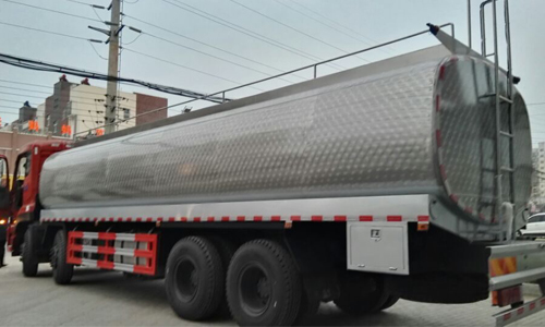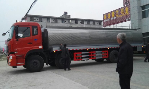 液態(tài)食品運輸車運送液態(tài)食品的罐車。罐體用食品級不銹鋼板制作,罐體外部需作保溫層防止鮮奶變質(zhì),罐體內(nèi)部要求光潔、無銳角,一般需要在每個奶艙內(nèi)加上cip(清洗裝置)。運距大于500km可以考慮加小型制冷機。