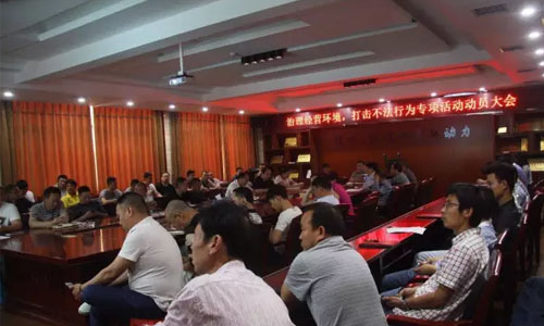 隨著公司不斷發(fā)展壯大,市場占有率的不斷增長,極少數(shù)人為了謀取更多的利潤,不惜鋌而走險(xiǎn),從事一些不法經(jīng)營活動(dòng),如以次充好、偽造印章等,對(duì)公司的聲譽(yù)和形象造成極壞的影響。為維護(hù)公司的形象,公司特召開“治理經(jīng)營環(huán)境,打擊不法行為專項(xiàng)活動(dòng)動(dòng)員大會(huì)”。
