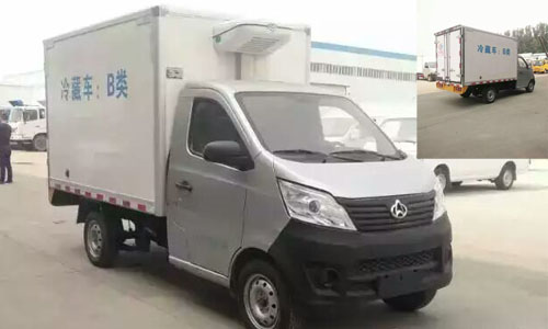 長安國五冷藏車 整車型號:CLW5020XLC5;5檔變速箱;外形尺寸(mm):4710×1660×2440;貨廂尺寸(mm):2680×1500×1550;軸距:2900mm;輪胎規(guī)格:175/70R14LT真空胎。新款單排駕駛室;最高車速(Km/h):120;車廂頂部封閉,不可開啟;選裝側(cè)門。