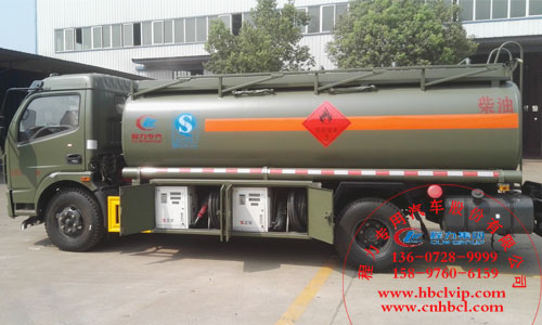 沈陽某武警部隊(duì)訂購湖北程力東風(fēng)多利卡加油車底盤采用東風(fēng)多利卡單排可翻轉(zhuǎn)車身,國四CY4102-CE4C朝柴發(fā)動(dòng)機(jī)91千瓦,5檔變速箱,2.4噸前橋,4.2噸后橋,192mm大梁,3800mm軸距,8.25R16輪胎,前盤后鼓剎車,電子熄火,限速器,東風(fēng)(62)原廠ABS,消聲器前置。整車型號(hào)CLW5115GJYD4型加油車,底盤型號(hào):DFA1110SJ11D3,軸距:3800mm,總質(zhì)量:11.495噸,額定載質(zhì)量:6.4噸,整備質(zhì)量:4.9噸。運(yùn)油車罐體采用國標(biāo)碳鋼鋼材制作,罐體分2倉,每倉帶一套加油槍及15米卷盤,每倉配一套正星大流量加油機(jī),每倉帶一套下裝油系統(tǒng)。湖北程力東風(fēng)多利卡加油車圖片展示: