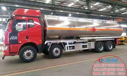解放前四后八鋁合金油罐車上裝配置:罐體通倉(cāng)采用鋁合金5182厚7mm、筒體厚6厘、隔板厚5mm。2個(gè)歐標(biāo)罐口,1個(gè)海底閥。整套歐(罐中間出料,下裝油,油氣回收)。附件:碳鋼后保險(xiǎn)桿,鋁合金副件(活動(dòng)護(hù)欄,1個(gè)工具箱,出口箱,側(cè)護(hù)欄,防滑走道,后爬梯不銹鋼炮筒)。泵進(jìn)泵出。2個(gè)4kg滅火器,3塊告示牌。本色表面拋光打蠟,3M反光帶,條,<爆>字。