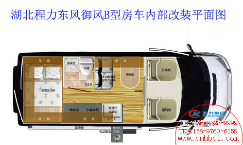 為更方便的了解這輛房車,我們先來看一看內(nèi)部改裝平面圖: