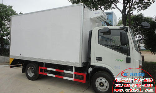 國五冷藏車廂體內(nèi)部尺寸:4015×2060×2000mm, 廂體采用三明治結(jié)構(gòu),內(nèi)外飾1.2mm鋁合金板蒙皮;中間夾層保溫材料采用聚氨酯切片真空負壓一次復(fù)合成型;厚度8cm, 符合國家衛(wèi)生部頒布食品等級要求,具有強度高、耐腐蝕、抗老化、導(dǎo)熱性能低、無污染、不容易損壞等特點,底板為鋁合金防滑花紋板,保證底板保溫性能及底板的抗沖擊強度。雙后開門門框架全部采用不銹鋼制成的整體框架,門板重量輕,防腐性能好。雙后門中縫帶斜度,開關(guān)方便。門邊框密封采用進口優(yōu)質(zhì)橡膠(三元乙丙)密封條進行密封,保證廂體保溫效果的穩(wěn)定性,門邊,門鎖及附件均為不銹鋼制作。