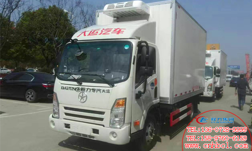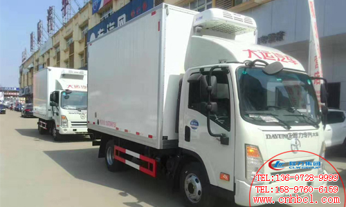 國(guó)五大運(yùn)藍(lán)牌冷藏車整車型號(hào):CGC5041XLCHDB33E型冷藏車, 總質(zhì)量(kg): 4210, 整備質(zhì)量(kg):3000, 額定質(zhì)量(kg): 1015,1080, 底盤型號(hào):CGC1041HDB33E,底盤采用大運(yùn)1735單排駕駛室,軸距:2800mm,國(guó)五德威102發(fā)動(dòng)機(jī),6.50R16輪胎,5檔變速箱,4噸后橋,油剎,帶方向助力,ABS,尿素罐,電動(dòng)門窗180*5大架。 冷藏廂體尺寸:3560*1810*1800mm.云南客戶訂購(gòu)2臺(tái)大運(yùn)藍(lán)牌單排冷藏車已發(fā)車(如下圖):