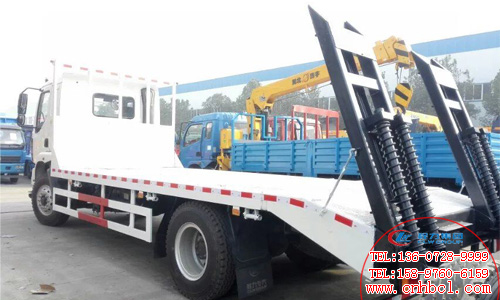 國(guó)五東風(fēng)柳汽平板運(yùn)輸車上裝配置:整車上戶噸位7.865噸,軸距5100mm,貨廂平板尺寸為5900-6700mm×2500mm,平板上平面離地高度為1000mm,可承載的挖機(jī)型號(hào)為60#、65#、70#、80#、85#、90#、135#、150#、180#。最達(dá)承載18噸。