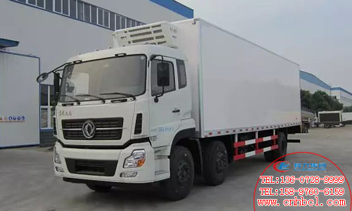 國五東風天錦小三軸冷藏車整車型號:DFH5250XLCBXV型冷藏車,底盤型號:DFH1250BXV,總質量: 25000kg,整備質量: 9400,9170kg,額定載質量:15405,15635kg.