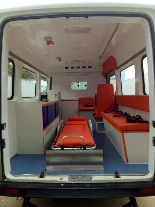 注:東風(fēng)御風(fēng)救護(hù)車轉(zhuǎn)運(yùn)型改裝配置(外觀與救護(hù)艙內(nèi)飾可定制):1、折疊擔(dān)架1件,2、自動(dòng)上車擔(dān)架1套,3、醫(yī)療柜1件,4、10L氧氣瓶1只,5、輸液吊鉤2個(gè),6、消毒燈1只,7、醫(yī)療艙左側(cè)單人座椅2只,8、駕駛室后隔斷帶滑窗,9、全藍(lán)警燈報(bào)警器1套,10、照明燈2只,11、逆變器1只,12、電源插座1組,13、中門上車扶手;后門上車踏板,14、醫(yī)用耐磨朔膠地板,15、車身救護(hù)標(biāo)志和彩條,16、前后艙空調(diào)和暖風(fēng),17、車窗貼黑色隔熱膜,18、中隔斷后看護(hù)座椅1只.