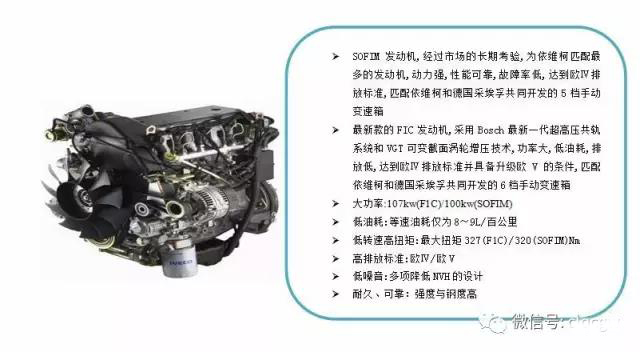 最新款的FIC發(fā)動機,采用Bosch最新一代超高壓共軌系統(tǒng)和VGT可變截面渦輪增壓技術(shù),功率大,低油耗,排放低,匹配依維柯和德國采埃孚共同開發(fā)的6檔手動變速箱。