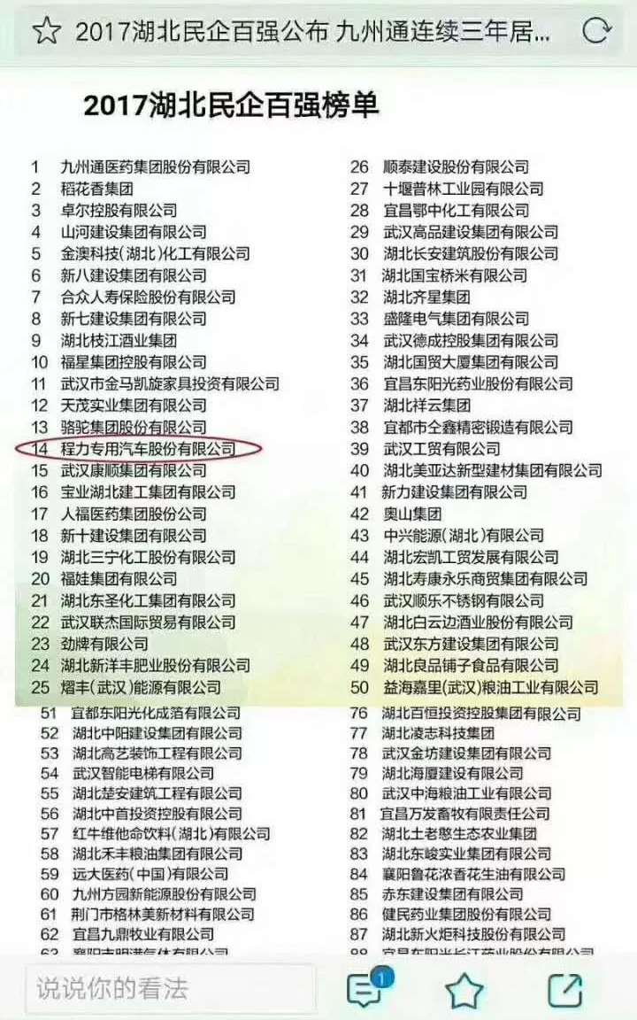 相關(guān)推薦:2017年湖北省民企百?gòu)?qiáng)公布,程力汽車集團(tuán)旗下的程力專用汽車股份有限公司,榜單排名由2016年的37位一躍攀升至湖北民企第14位。公司在經(jīng)濟(jì)新常態(tài)下實(shí)現(xiàn)了健康、穩(wěn)定的逆勢(shì)快速增長(zhǎng),再次跨越力爭(zhēng)第一的戰(zhàn)略目標(biāo)將越來越明晰和接近現(xiàn)實(shí)。