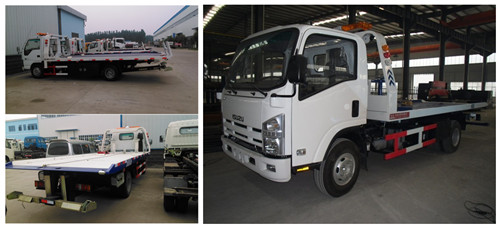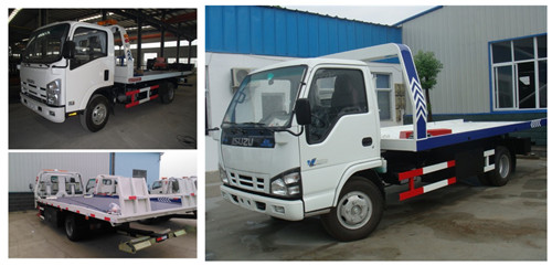 國五慶鈴五十鈴一拖二清障車上裝配置: 4噸上裝,雙側聯(lián)動操作,后托臂拖舉2噸,平板4噸卷揚.有花紋板及壓制板可選.板長5600x2300mm,配輔助小車一套. 黃色電子警燈.四根捆綁帶.
