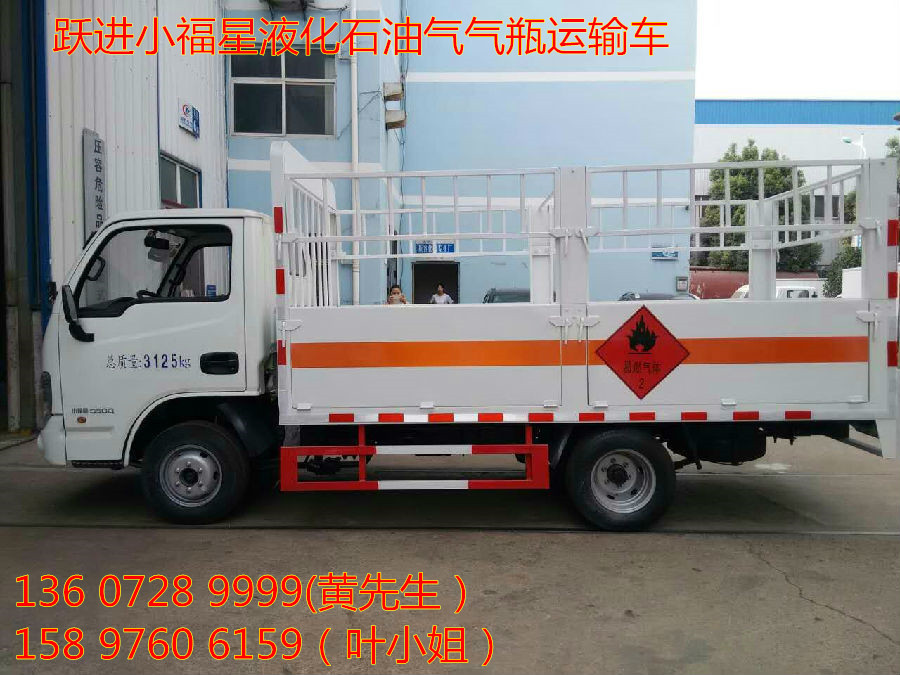 躍進(jìn)小福星液化石油氣氣瓶運(yùn)輸車(chē)該車(chē)適用于運(yùn)輸危險(xiǎn)品為危險(xiǎn)貨物運(yùn)輸車(chē),隨底盤(pán)選裝駕駛室。主要用于運(yùn)輸具有獨(dú)立容器(瓶)包裝的液化石油氣,丁烷, 乙炔, 乙烷, 丙烷, 丁烯, 打火機(jī)或打火機(jī)加油器, 二氧化碳, 壓縮氧(氮, 空氣, 氦, 氬, 氖), 類(lèi)項(xiàng)號(hào):2.1。