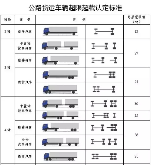 中國公路貨車超載超限標(biāo)準(zhǔn)一覽表