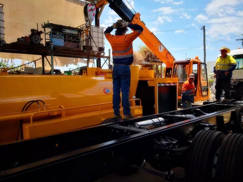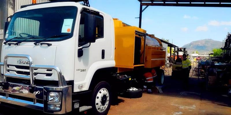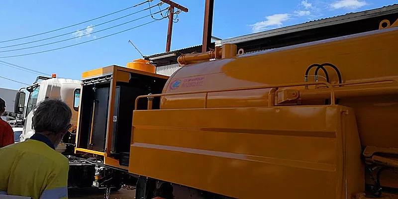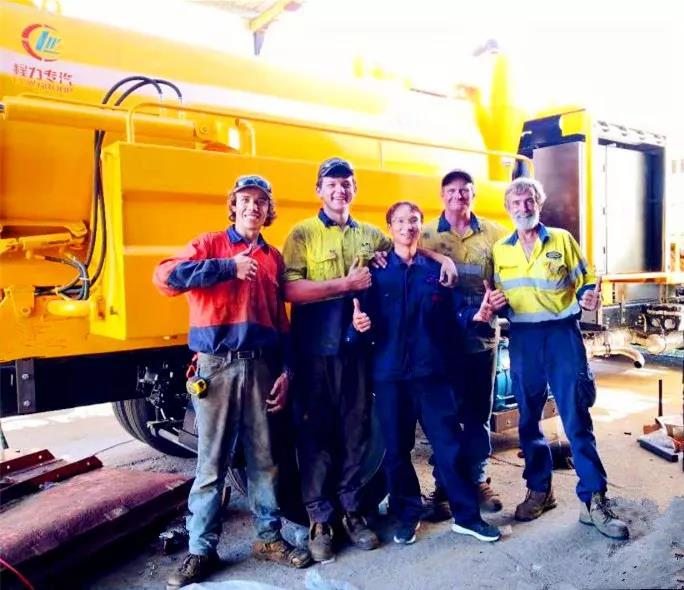 程力環(huán)保車專業(yè)廠生產(chǎn)的高端智能聯(lián)合清洗吸污車在澳大利亞湯斯維爾市調(diào)試裝備。