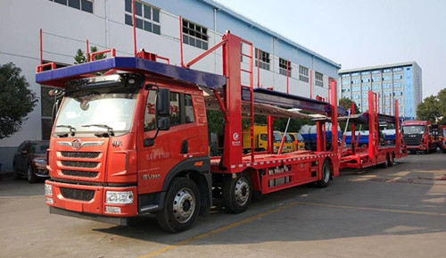 分為骨架式、半封閉式、全封閉式骨架式,即側(cè)片為立柱組成,無(wú)側(cè)蒙板,無(wú)前片、后門和頂片。自重輕、成本低、油耗小,但運(yùn)輸貨物時(shí)不方便,且轎車易受損;全封閉式轎運(yùn)車,即側(cè)片、前片均采用蒙板封閉,帶后門,頂片為蓬桿蓬布式。自重大,成本高,油耗大,但能保護(hù)轎車,且能運(yùn)輸其它貨物;半封閉式轎運(yùn)車,即無(wú)頂片,其特點(diǎn)介于兩者之間。